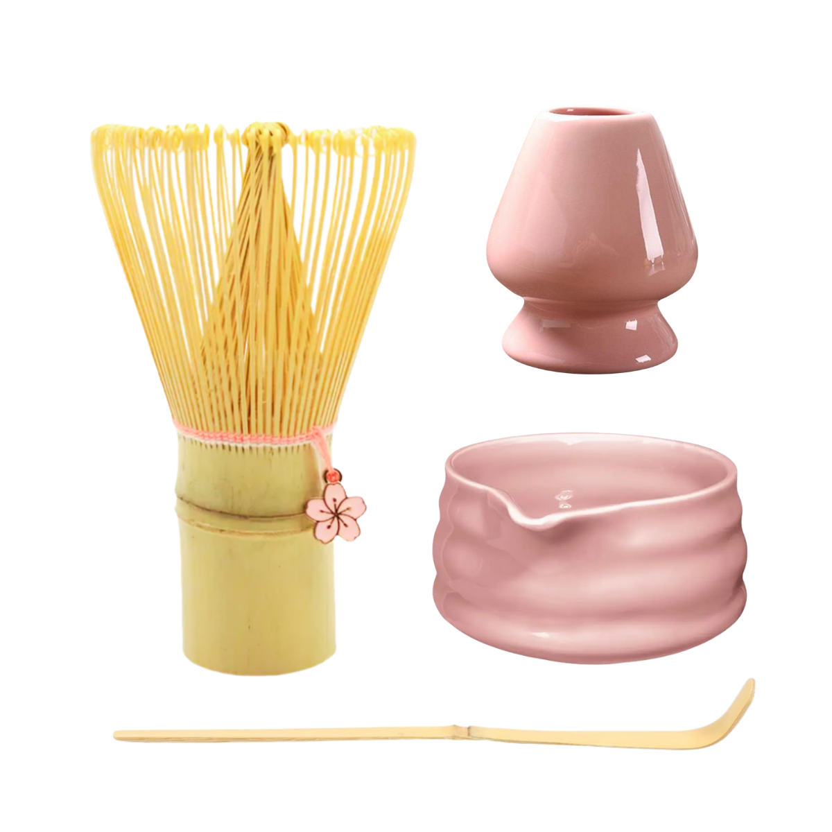 Set Ritual Edición Flor: Batidor Flor + Chashaku + Naoshi + Tamizador: Rosa